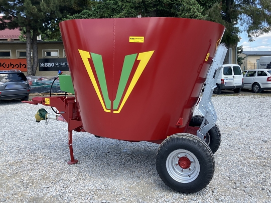 Vertikálny kŕmny voz Strautmann Verti-Mix 50 ponúka objem 5 m³, čo z neho robí praktickú voľbu pre farmy s menším počtom zvierat, kde je dôležitá kompaktnosť a jednoduchá manipulácia v obmedzených priestoroch. Stroj pracuje s miešacou jednotkou Strautmann IMS, ktorá vytvára homogénnu kŕmnu zmes bez ohľadu na typ použitých surovín. Odolná konštrukcia nádoby zabezpečuje dlhú životnosť aj pri intenzívnom dennom používaní.